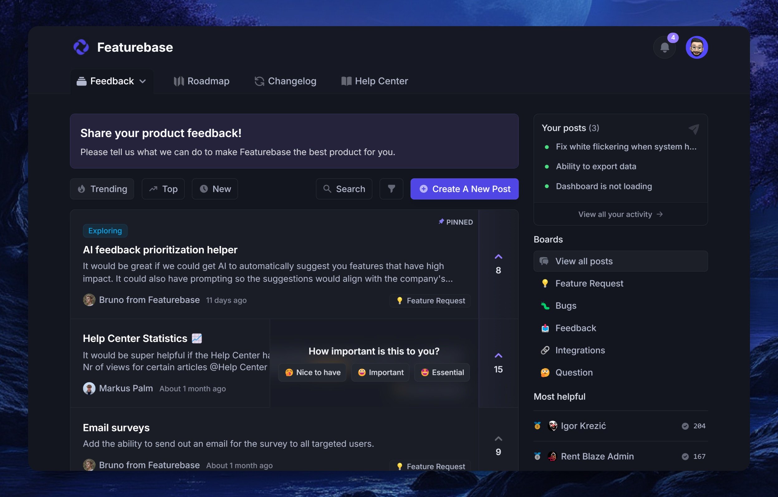 Featurebase represents a new generation of lightweight, modern knowledge management tools, designed for small teams, startups, or organizations experimenting with KM. These platforms emphasize simplicity, semantic search, and fast deployment, enabling teams to capture and find knowledge quickly without heavy overhead.