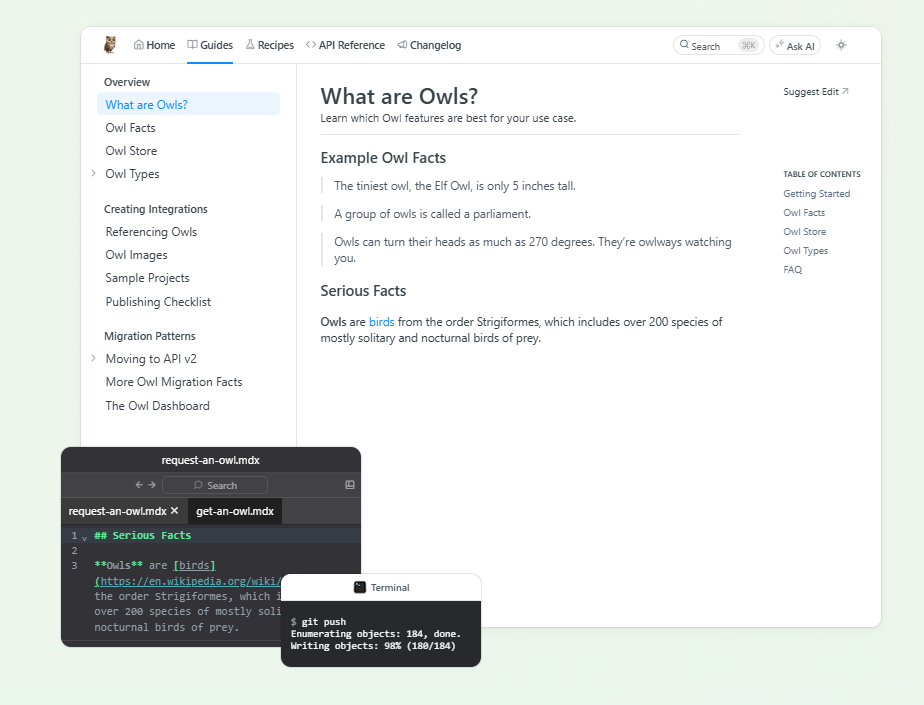 Read the Docs, often paired with Sphinx, is an open-source platform for versioned, static documentation, primarily targeting developers, technical teams, and open-source projects. It allows teams to write, build, and host documentation in a structured format, providing full control over content, versioning, and deployment.