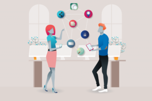 The digital workplace is the virtual, digital equivalent of the physical workplace. It is a holistic user-centered solution used to connect, engage, and empower employees. Through an employee-centered hub, it encompasses a set of tools, applications, and platforms for a complete work experience.