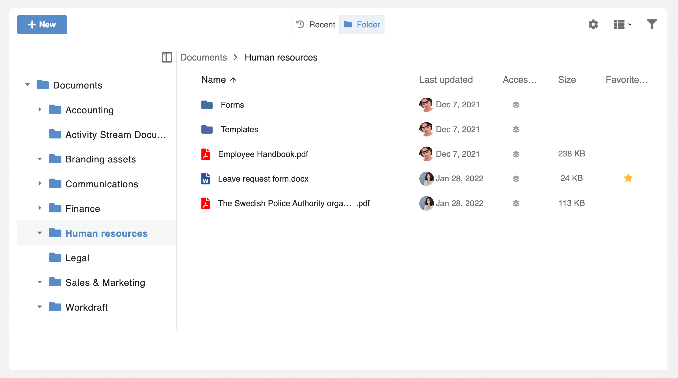 Folders tree navigation