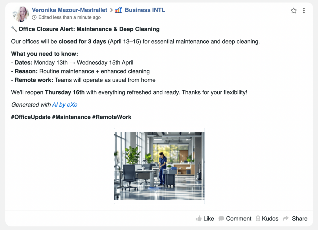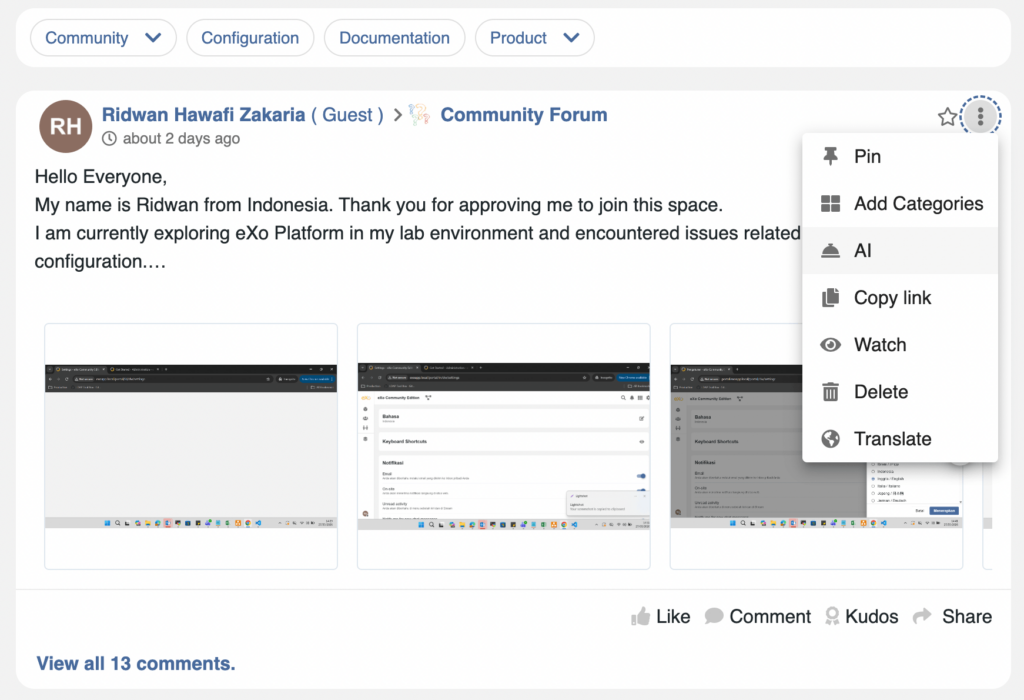 AI in eXo is designed to support one of the most common activities at work: producing and sharing content.