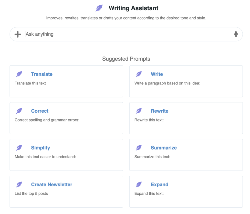 Whether working on a document, a post or a message, users interact with AI in a familiar way.