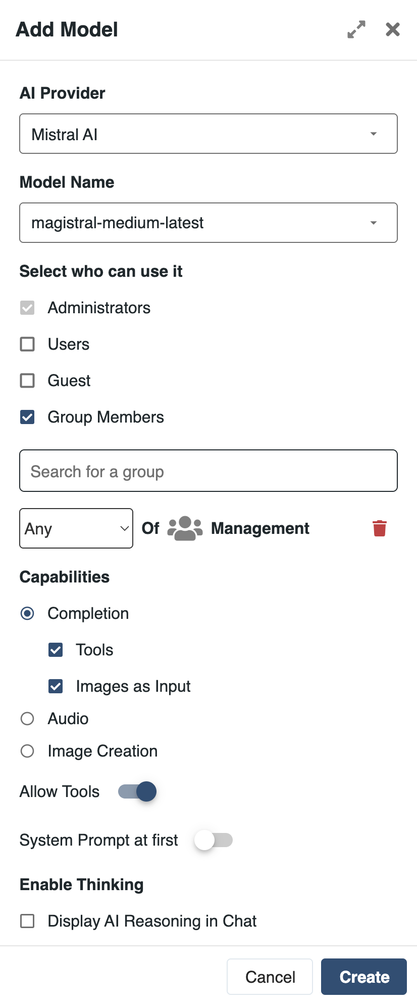 Models can be selected depending on the use case, with a different model applied to each. This allows organizations to adapt AI behavior based on performance, data sensitivity, or cost requirements.