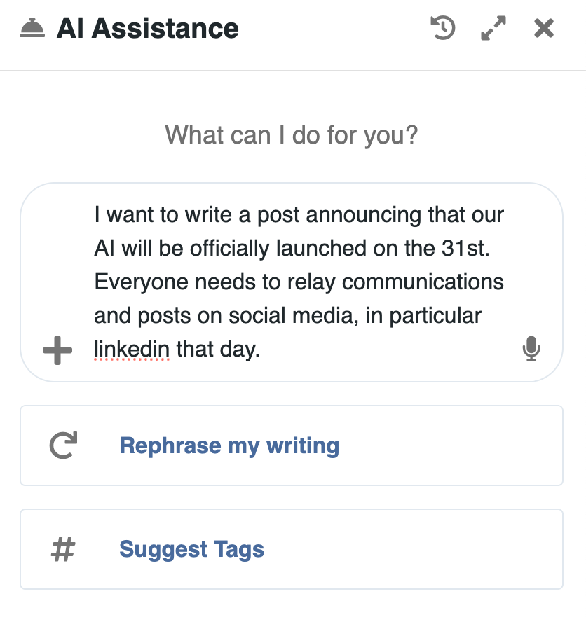 Whether writing an article, replying to a message, preparing a document or posting an update, users can access AI directly within their workflow to draft, improve or adapt their content.
