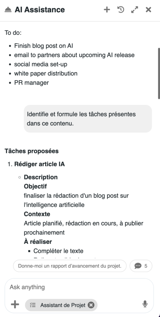 By analyzing content, conversations and activity across the platform, AI helps users structure work, make decisions, and move faster.