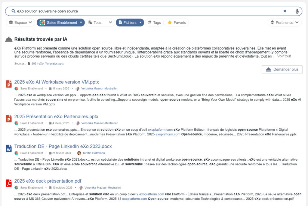 En combinant une flexibilité multi-modèles, une intégration maîtrisée des données via RAG, une application stricte des permissions et une couche d’actions intégrée, eXo offre une IA à la fois puissante et entièrement maîtrisée.