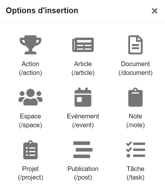 Cela peut se faire à l’aide d’interactions familières, permettant aux utilisateurs de préciser la cible exacte d’une action, par exemple, où publier un message ou dans quel projet créer une tâche.