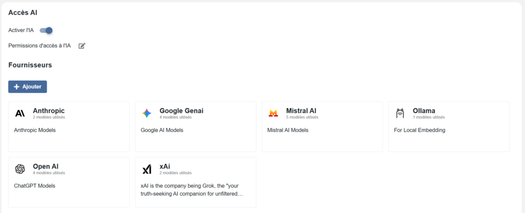 Les administrateurs peuvent gérer l’IA via une interface unifiée qui centralise toutes les options.