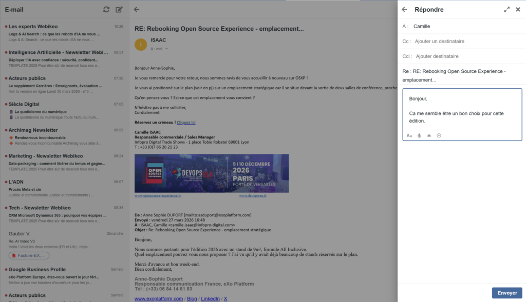 Au-delà de l’aide à la rédaction ou à la compréhension des informations, l’IA d’eXo poursuit un objectif plus ambitieux : transformer l’information en action.