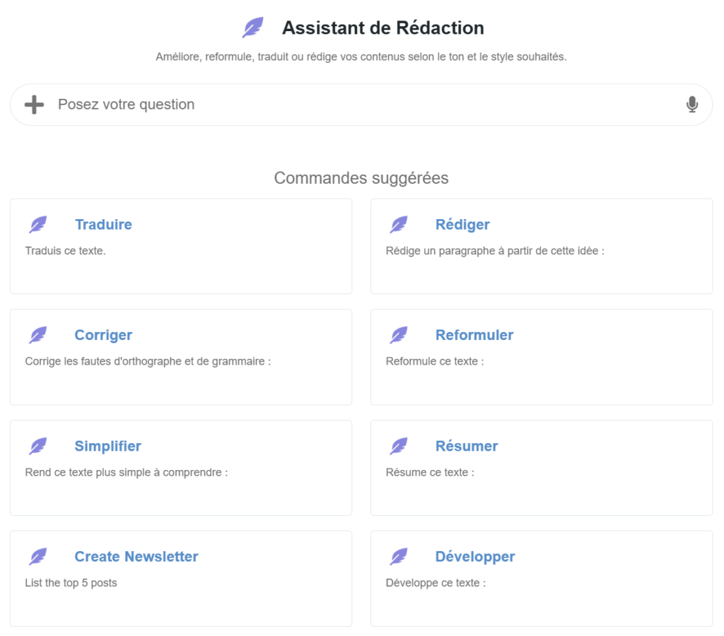 Dans les sections suivantes, nous explorerons d’abord ces capacités du point de vue de l’utilisateur final, puis nous examinerons de plus près comment cette IA est conçue et maîtrisée côté administrateur.
