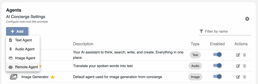 Plusieurs options sont disponibles pour l’assistant général. L’administrateur choisit notamment les agents spécialisés que les utilisateurs pourront appeler depuis leur interface :